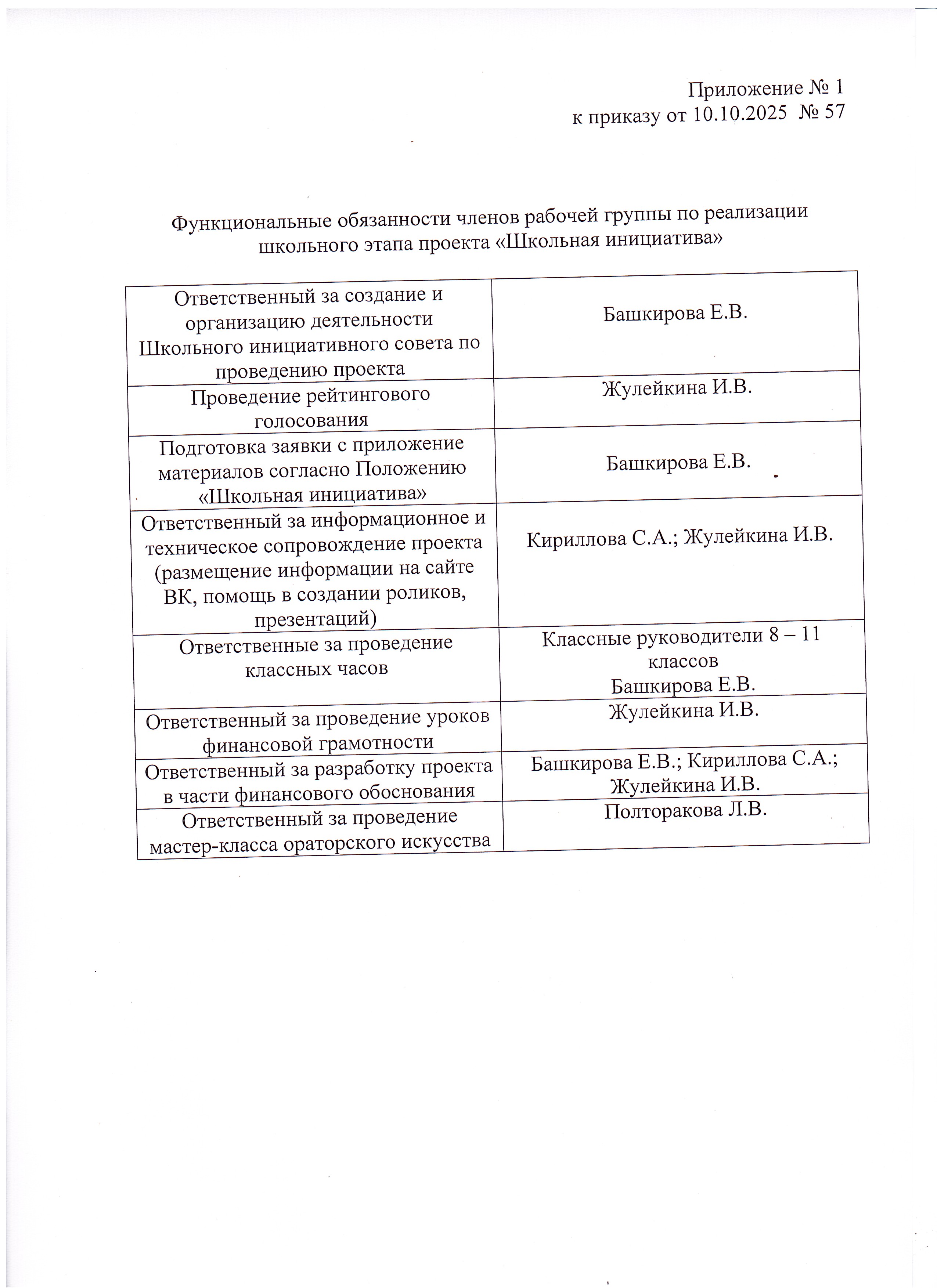 Функциональные обязанности членов рабочей группы по реализации школьного этапа проекта "Школьная инициатива"
